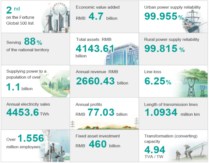 As the world's largest utility, State Grid ranked the 2nd on Fortune Global 500 with its mission to provide safer, cleaner, more economical and sustainable power supply. Over more than 20 years, State Grid has recorded the world's longest hours of safe operation of its super large grid, completed over 20 UHV power transmission projects, and integrated the largest amount of renewables with the strongest power transmission capacity. Among central state-owned enterprises, it has ranked first in terms of patent ownership for years. State Grid was rated the same as China's sovereign by the three major credit rating agencies for 9 straight years (Standard & Poor's A+, Moody's A1, and Fitch A+). As an innovative enterprise leading the industry, it has been the No.1 of the China's 500 Most Valuable Brands for 6 solid years and of Utilities 50 for 4 years in a row.
